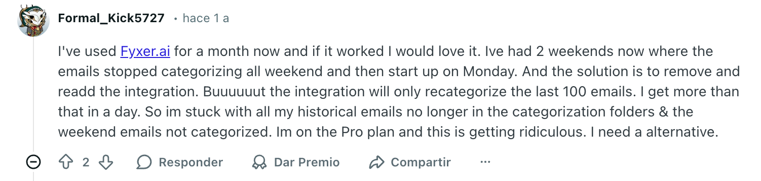 For growing businesses, this means the tool effectively penalizes you for receiving more mail, an unpredictable cost structure that has frustrated a number of users. Several Fyxer AI reviews confirm this and If your team is scaling, this is worth factoring into any budget comparison.