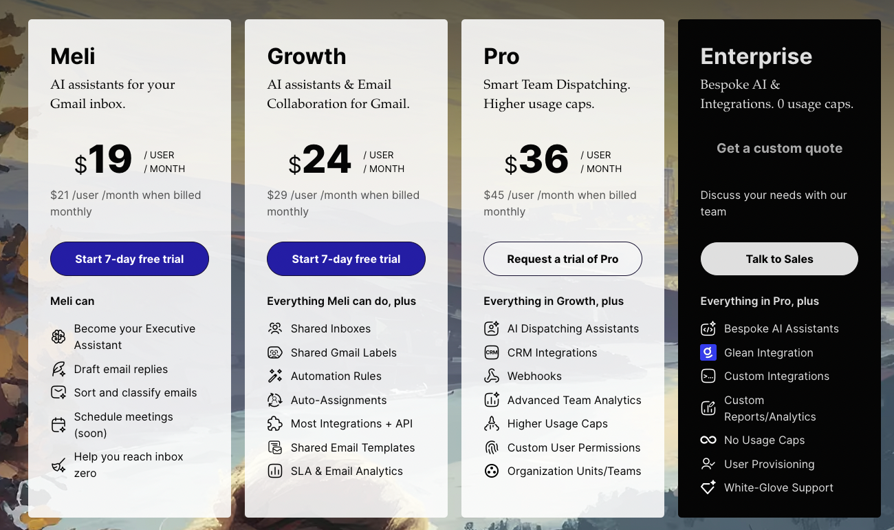 - Implicit learning: You shouldn't have to write a rulebook for your assistant. Meli will start learning implicitly from your actions, e.g., by observing which emails you skip, which clients you prioritize, and adjusting her behavior to match your style automatically.