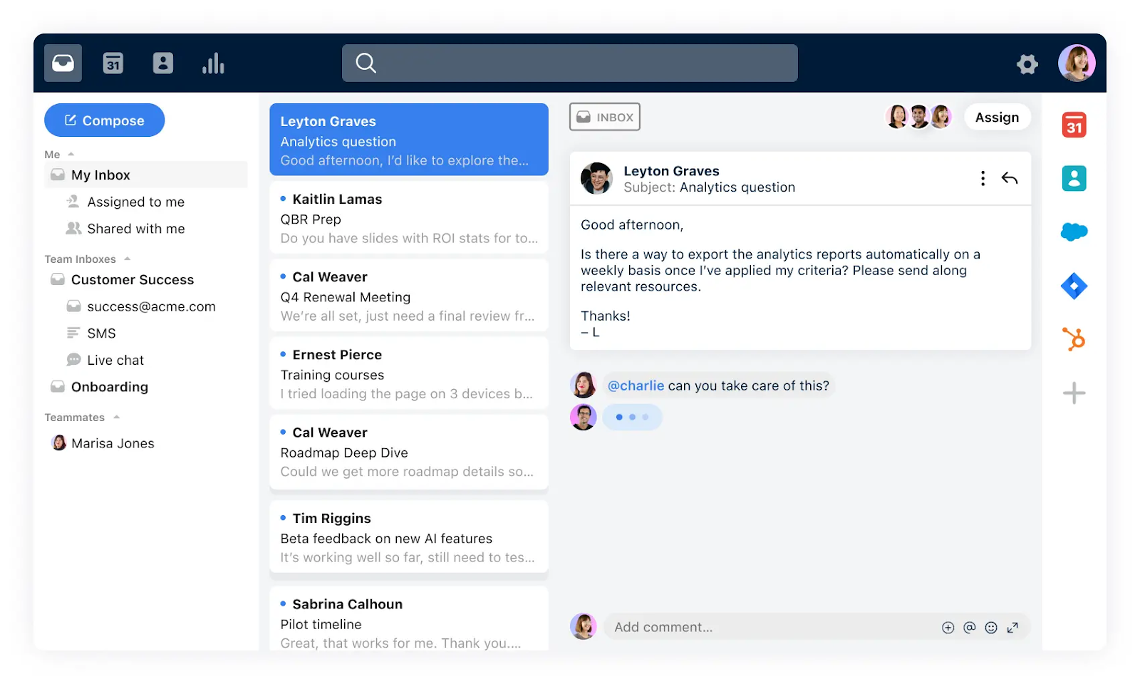 It is highly collaborative, but like Front, it forces you into a separate ecosystem. If your company already lives in Slack or Microsoft Teams for chat and Gmail for email, adding a third "chat/email hybrid" tool can sometimes confuse the communication stack rather than simplify it.