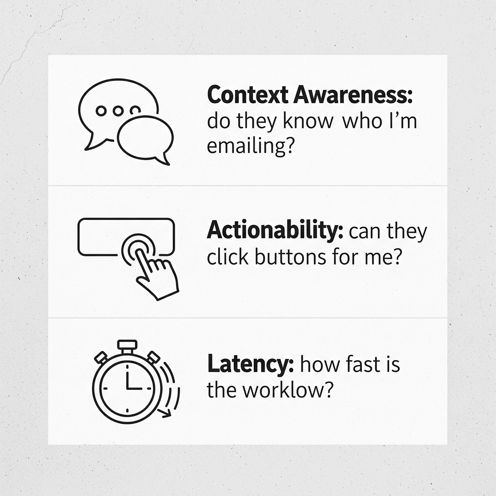 - Recall accuracy: Ask the AI to find a specific detail from an email 3 months ago. If it fails, it’s useless as an assistant.