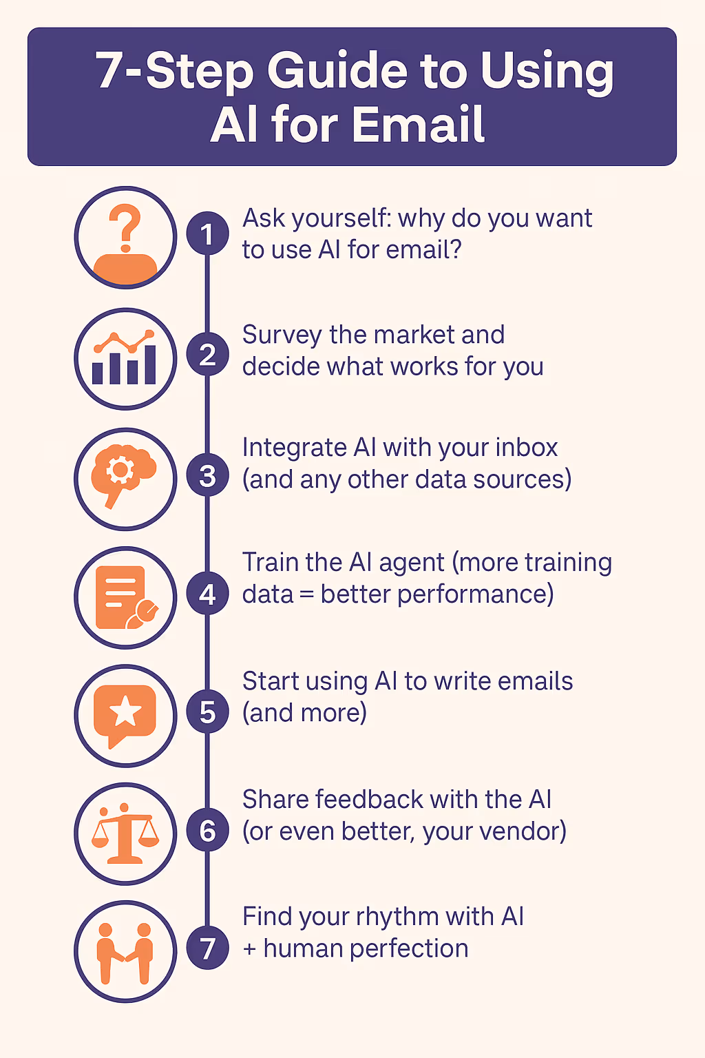 Start by auditing your current email flow. What slows you down? What’s repetitive? Pinpoint where AI can add speed, structure, or personalization. Setting clear goals at this stage makes success easier to measure later.