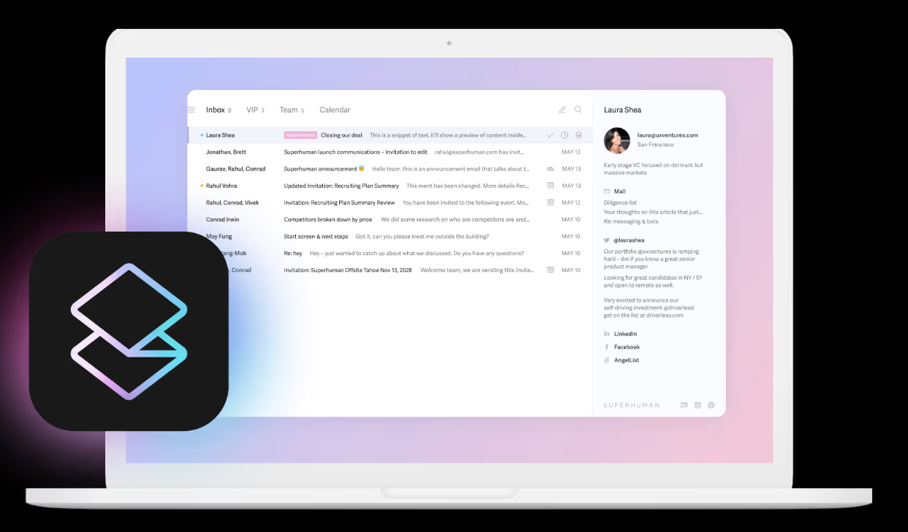 Superhuman combines speed-focused email design with AI features. Its AI helps draft quick replies, shorten messages, and maintain a polished tone. It is popular among executives, founders, and sales professionals who prioritize fast inbox management.