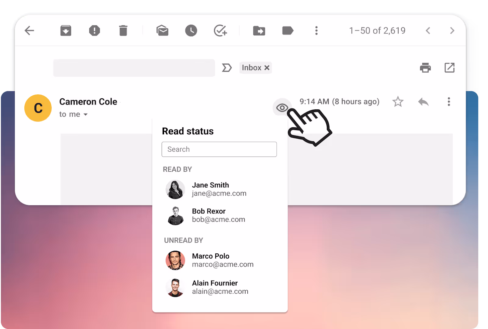 Lesebestätigungen auf Teamebene werden angezeigt, wann und von wem eine E-Mail geöffnet wurde, wodurch unnötige Nachfragen vermieden und ein klarer Prüfpfad für jede Konversation erstellt wird. Diese Transparenz verhindert unnötige Nachverfolgung und bietet einen klaren Prüfpfad der Teamaktivitäten in einem bestimmten Thread.