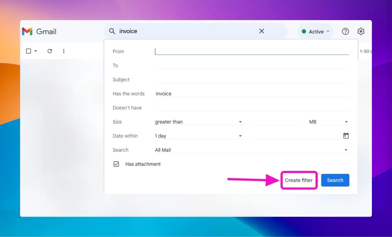 Klicken Sie auf“Filter erstellen„unten rechts im Suchmodus.