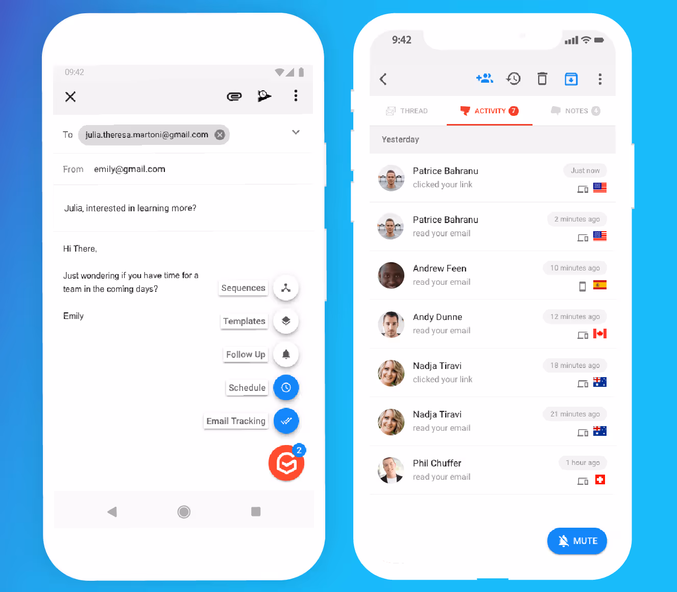 For both iOS & Android you can expect your favorite Gmelius features, elegantly packed into your mobile phone app.