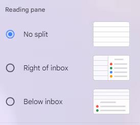 After clicking on settings, scroll down to view the reading pane settings. From there, select the view you would like. For example, right of inbox lets users view email conversations on the right side of the interface to sort emails while simultaneously viewing conversations. The same functionality applies to the below inbox view, which displays the same option below the inbox. This hidden Gmail feature can improve efficiency when sorting through emails.