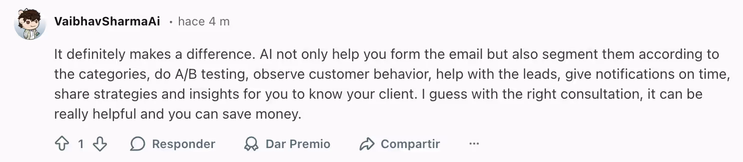 Cuanto más conectada esté la IA a tu bandeja de entrada y a los procesos del equipo, más útil será el resultado. Aunque reescribir frases genéricas es útil, las ganancias reales de productividad se obtienen con un sistema que sabe que se trata de una solicitud de renovación, un aumento de la asistencia o una objeción de ventas.