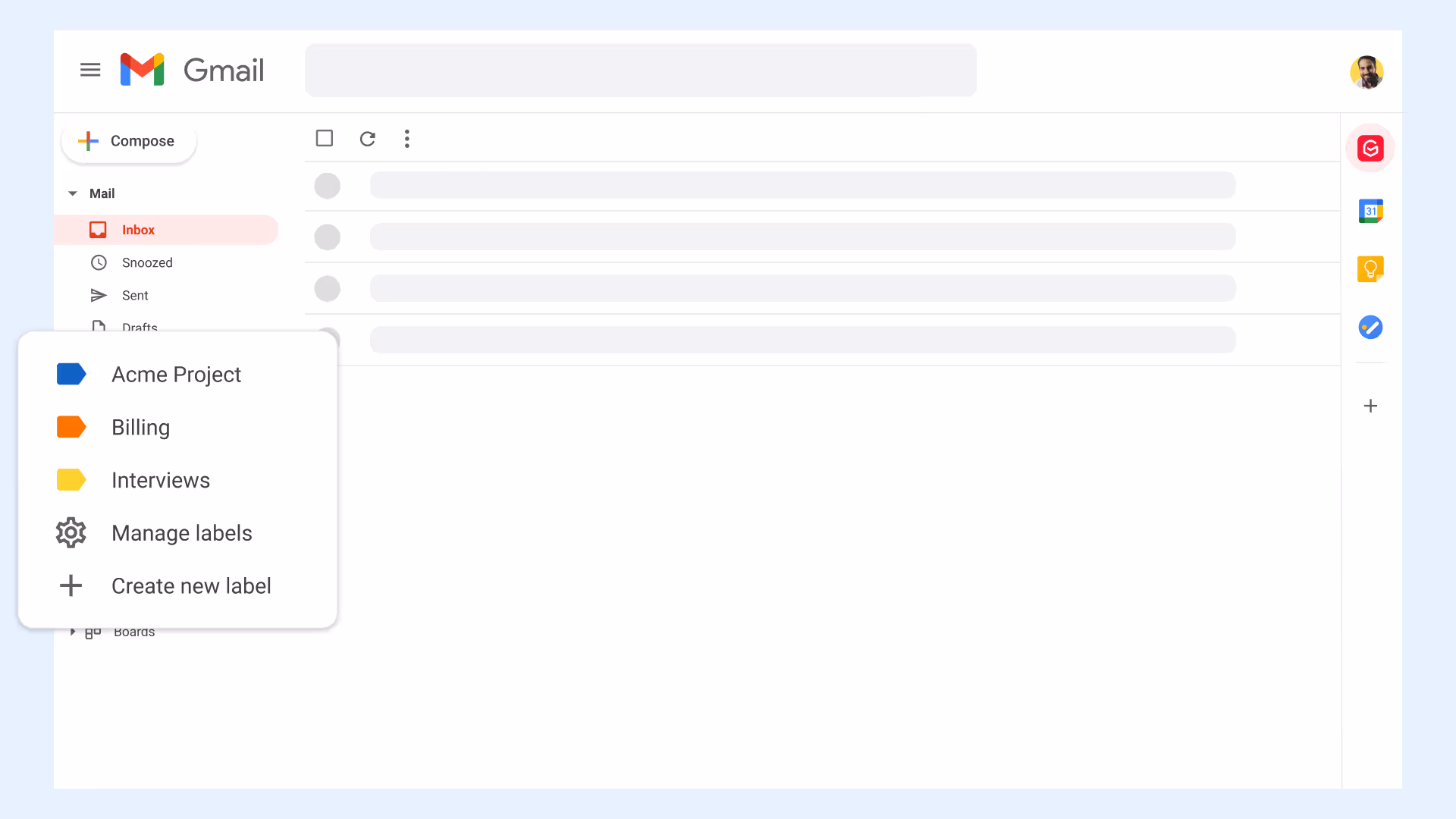 Cette technique d'organisation peut aider votre équipe à comprendre le niveau d'urgence d'une demande et à déterminer si elle a été traitée ou non. Cela permet d'éviter la confusion et les critiques qui peuvent survenir lorsque les e-mails ne sont pas lus. Les équipes peuvent poser leur candidature Étiquettes Gmail individuellement, ou automatisez le processus en créant des filtres qui appliquent des libellés aux e-mails répondant à certains critères.