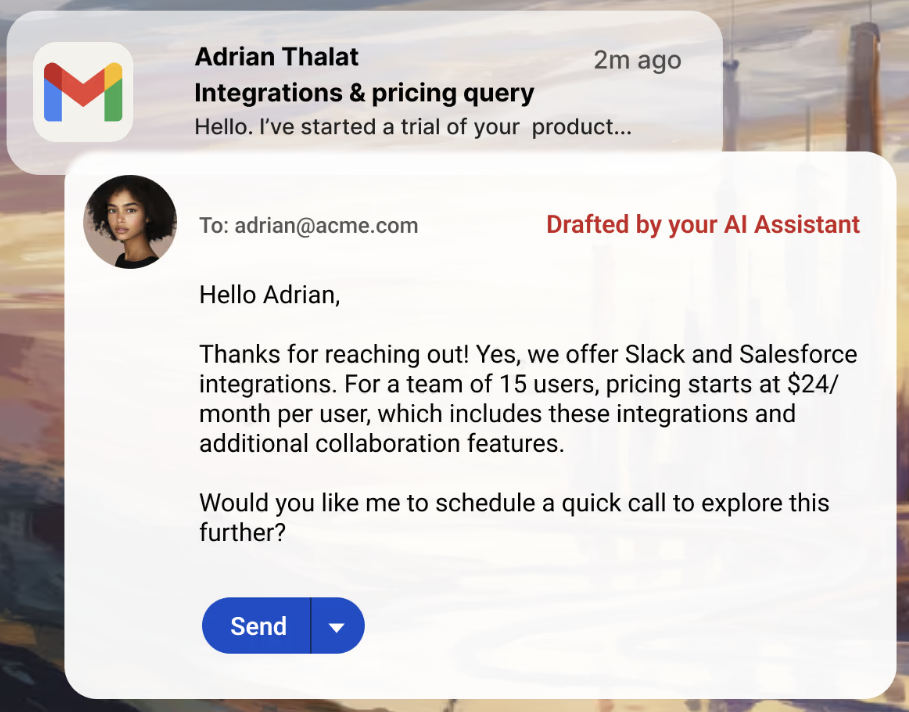 Gmelius' AI reply assistant