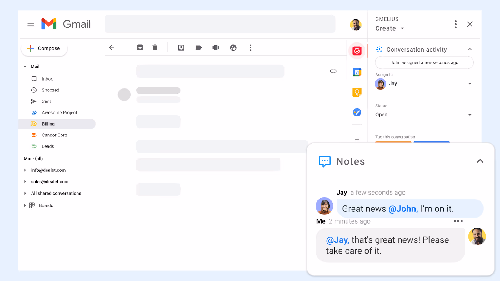 The AI assistant works alongside and powerful team collaboration features, built directly into your familiar Gmail interface.