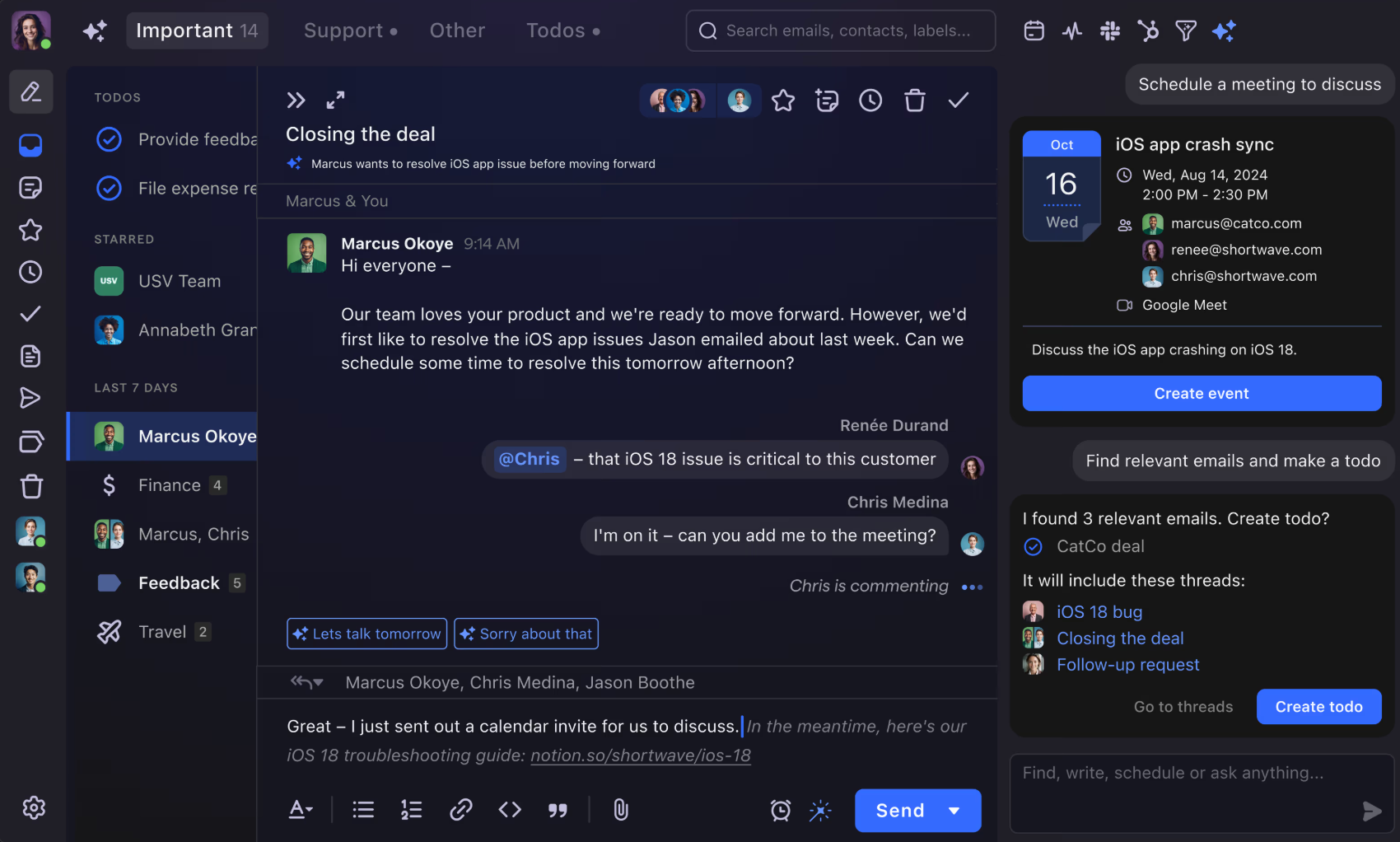 - Best for: Operations and Customer Support teams that need to discuss and collaborate on complex email replies frequently.