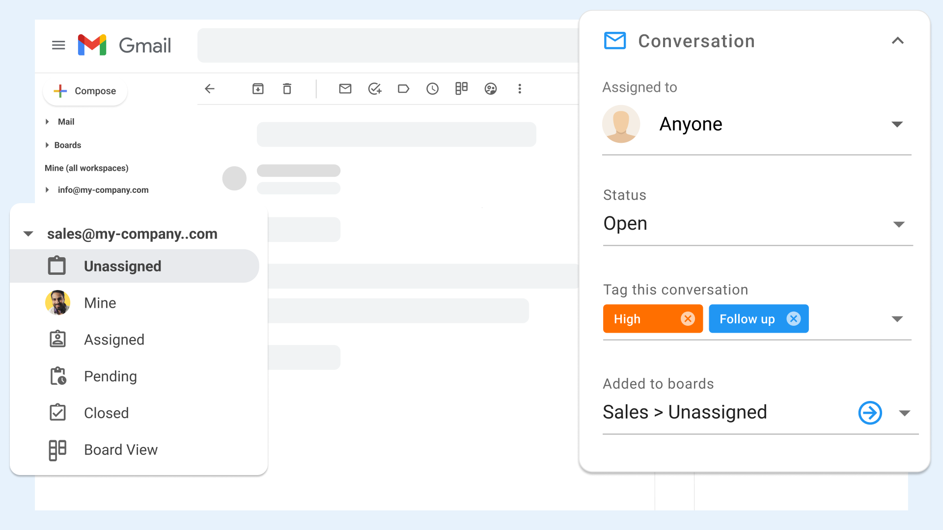 A shared inbox allows teams to invite relevant team members to manage emails to know who is working on what. This eliminates confusion regarding responsibility and accountability and reduces the need for Cc’ing and forwarding emails.