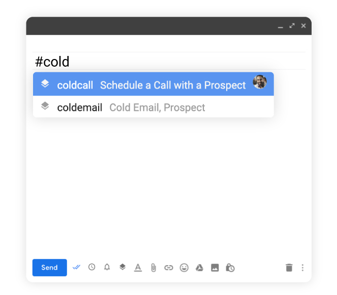Small details make a big difference. Create template hashtags to find the right template faster from your compose window. Once created, you just type the hashtag in the subject line to insert a template. Neat right?