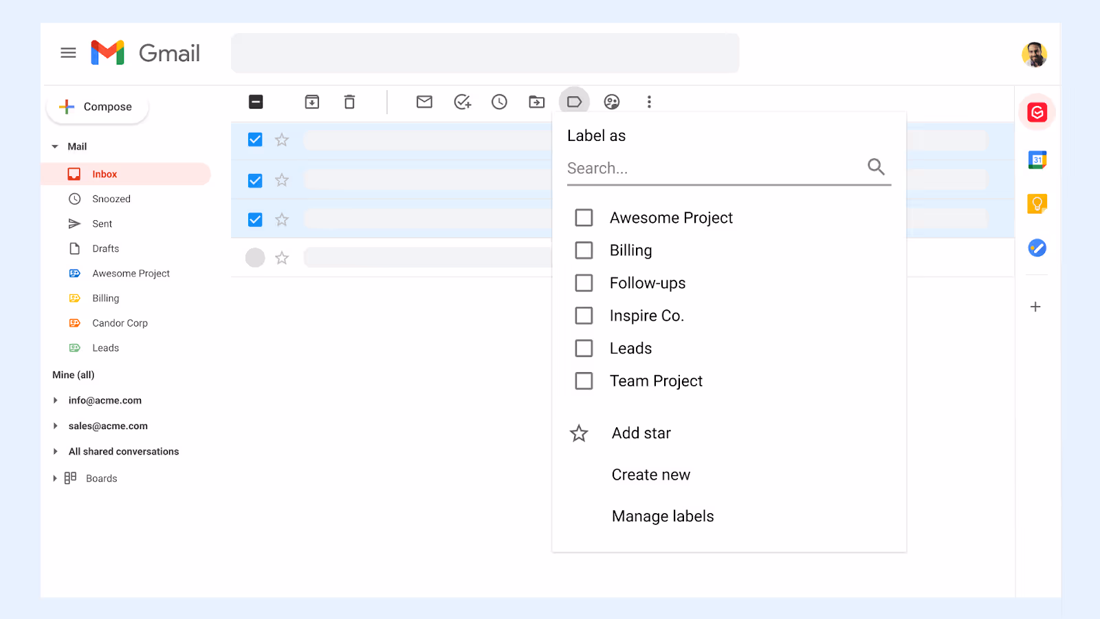Aplicar filtros e usar rótulos e notas pode ajudar a separar os e-mails nas categorias apropriadas para organizar sua caixa de entrada, permitindo que as equipes tenham mais tempo para se concentrar nos projetos.