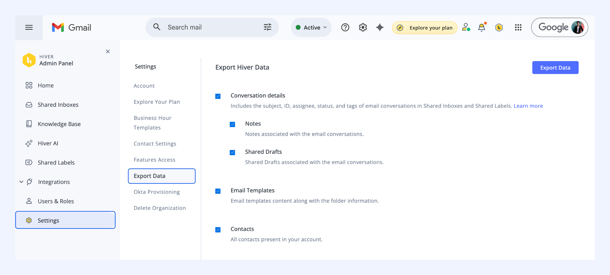 Before submitting that deletion request, there is one step that should happen first without exception: getting the data out. Once a Hiver account is deleted, access to everything stored in it is gone permanently.